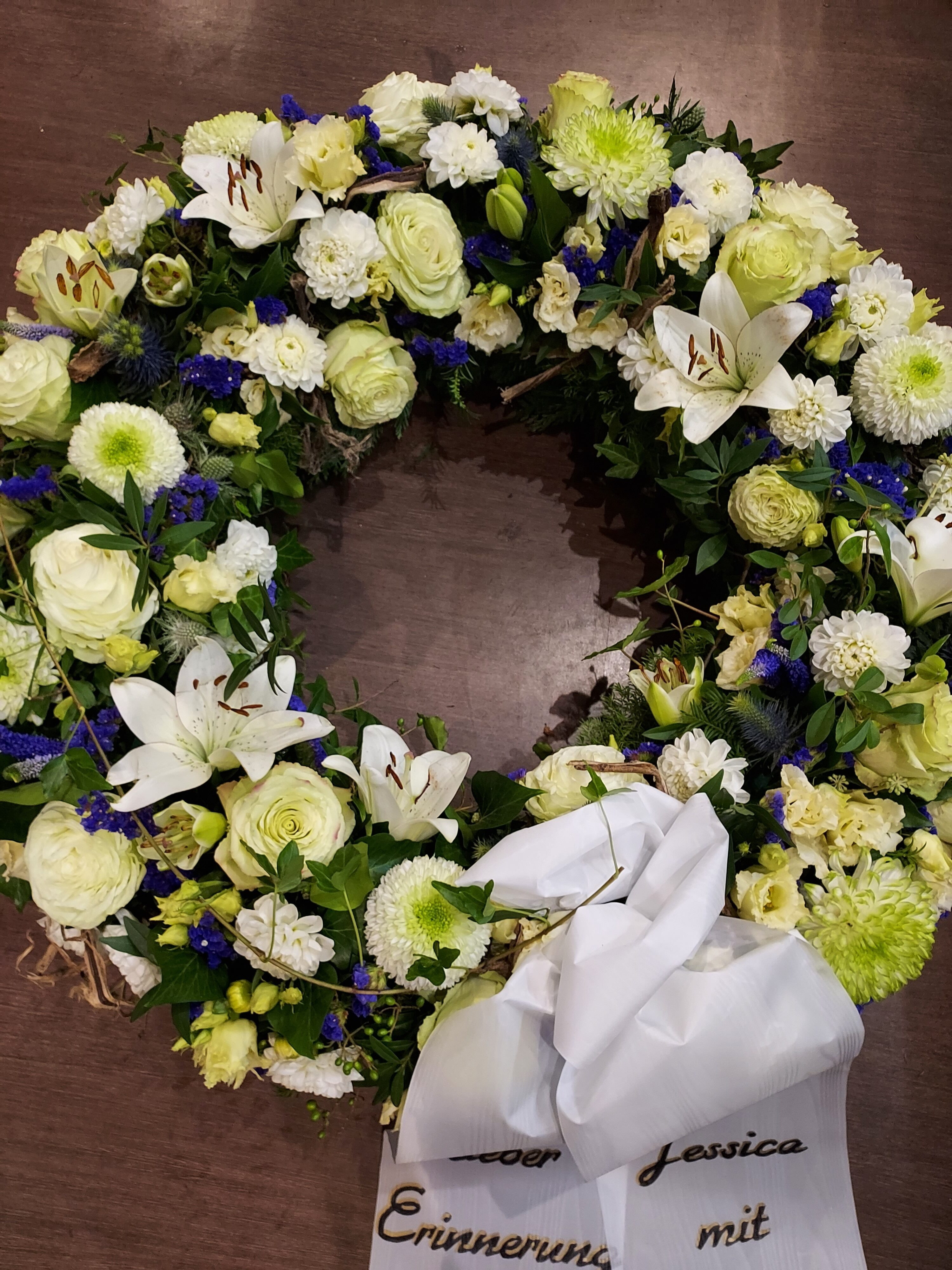 In Zeiten der Trauer fehlen oft die richtigen Worte. Blumen können sie ersetzen – sie spenden Trost, zeigen Anteilnahme und sind ein liebevolles letztes Geschenk an einen geliebten Menschen. Wir gestalten Kränze, Sargschmuck und Handsträuße, welche die verstorbene Person würdigen und zugleich deine persönlichen Vorstellungen für die Trauerfeier einfühlsam widerspiegeln.